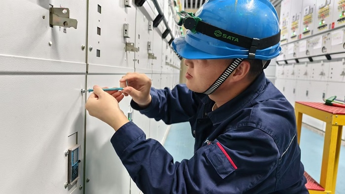 △廣東陽江海上風(fēng)電場運維人員開展35千伏開關(guān)站檢查